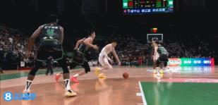 曾凡博起飞欲扣 付豪凶狠犯规将其拽倒 裁判回看后普通犯规